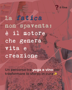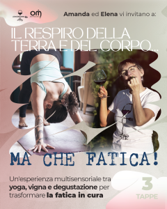 In questo percorso trasformeremo la fatica in cura e dedizione, coinvolgendo il corpo attraverso lo yoga e i sensi attraverso la degustazione del vino.