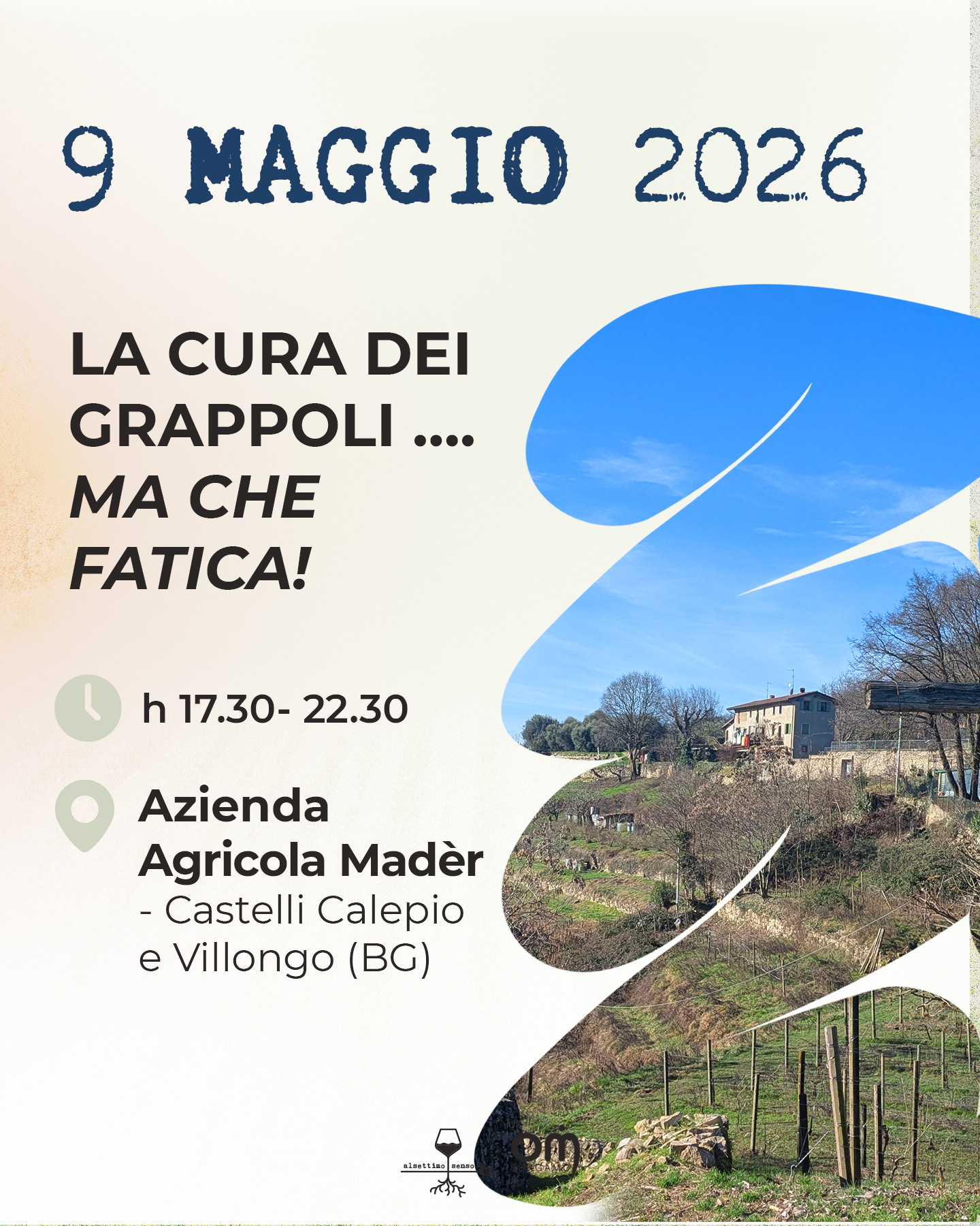 9 maggio 2026 17:30-22:30 – LA CURA DEI GRAPPOLI – Madèr – Castelli e Calepio Villongo (BG)
